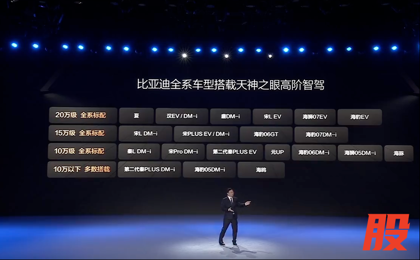 他强调,比亚迪的智驾要做的是“全民智驾”,20万元级别车系、15万元级别车系,以及10万元级别车系全部做到了全系标配“天神之眼”。而10万元级别以下的车型,例如海鸥等多数也将搭载“天神之眼”智驾系统。