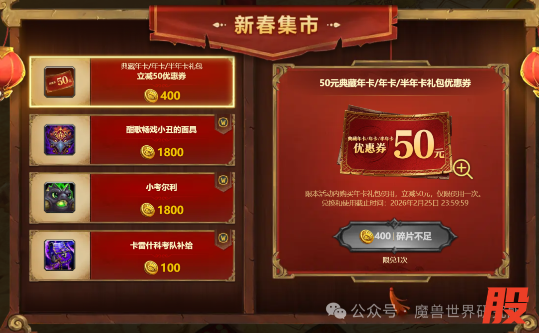 活动链接:https://wow.blizzard.cn/h5/20260205/lucky/#/