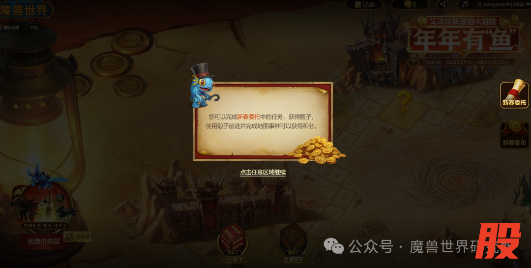 首次登录会给一个666骰子,后面的骰子就得做新春委托了